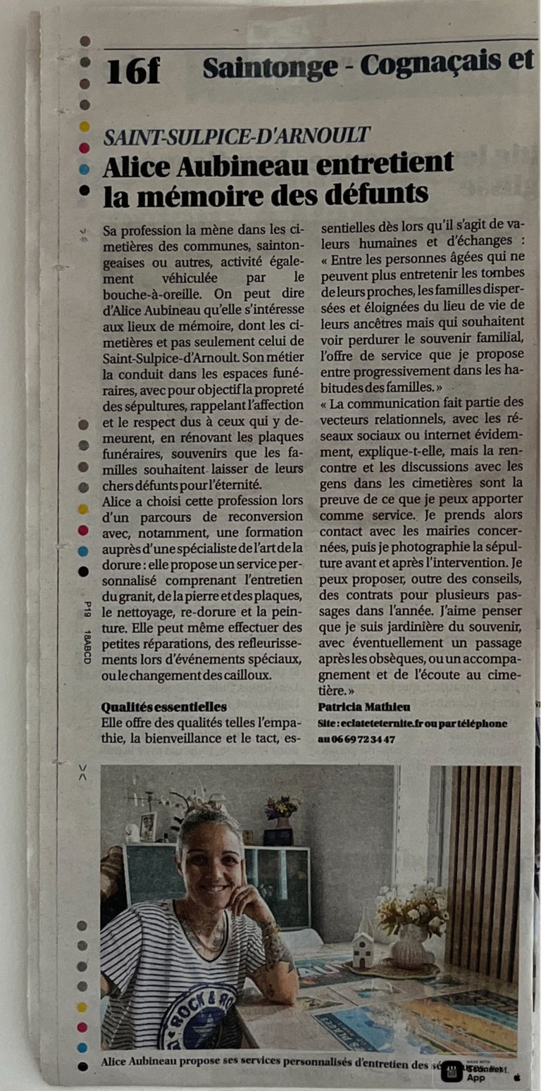 Parution juillet 2025 dans le journal Sud Ouest édition Charente Maritime